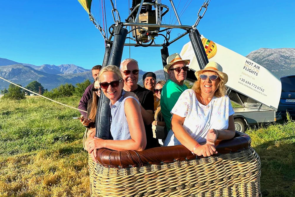 Soaring high above Crete in a hot air balloon is an incredible experience. You’ll see stunning views of the island’s landscapes, villages, and the sparkling Mediterranean Sea below.